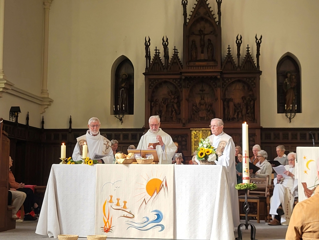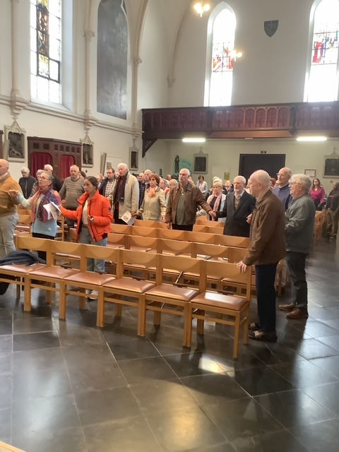 Het werd een mooie viering gezamenlijk voorgegaan door Klaas, Gust, Boni en Toon, de leden van het parochieteam zongen, waren lector of misdienaar. Voor de prachtige muziek zorgde een gelegenheidskoor, gevormd door leden van onze 3 parochiekoren, onder de enthousiaste leiding van Jeannine en met Tom aan het orgel. Bedankt aan iedereen die meewerkte aan deze mooie viering.