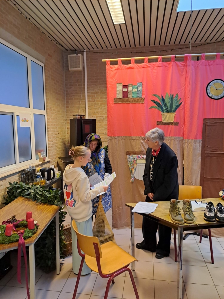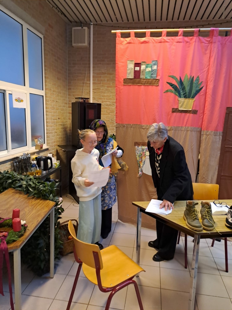 Onder de pauze trakteren we onze gasten met een tasje koffie en stukje cake (gebakken door de ouders van de vormelingen). Tot slot bedankte we onze gasten met een mooie kerstroos.